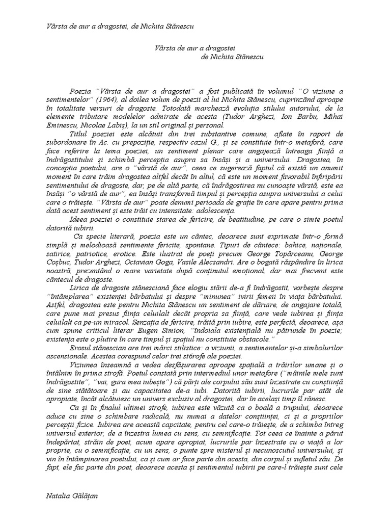 Varsta de aur a dragostei de nichita stanescu.